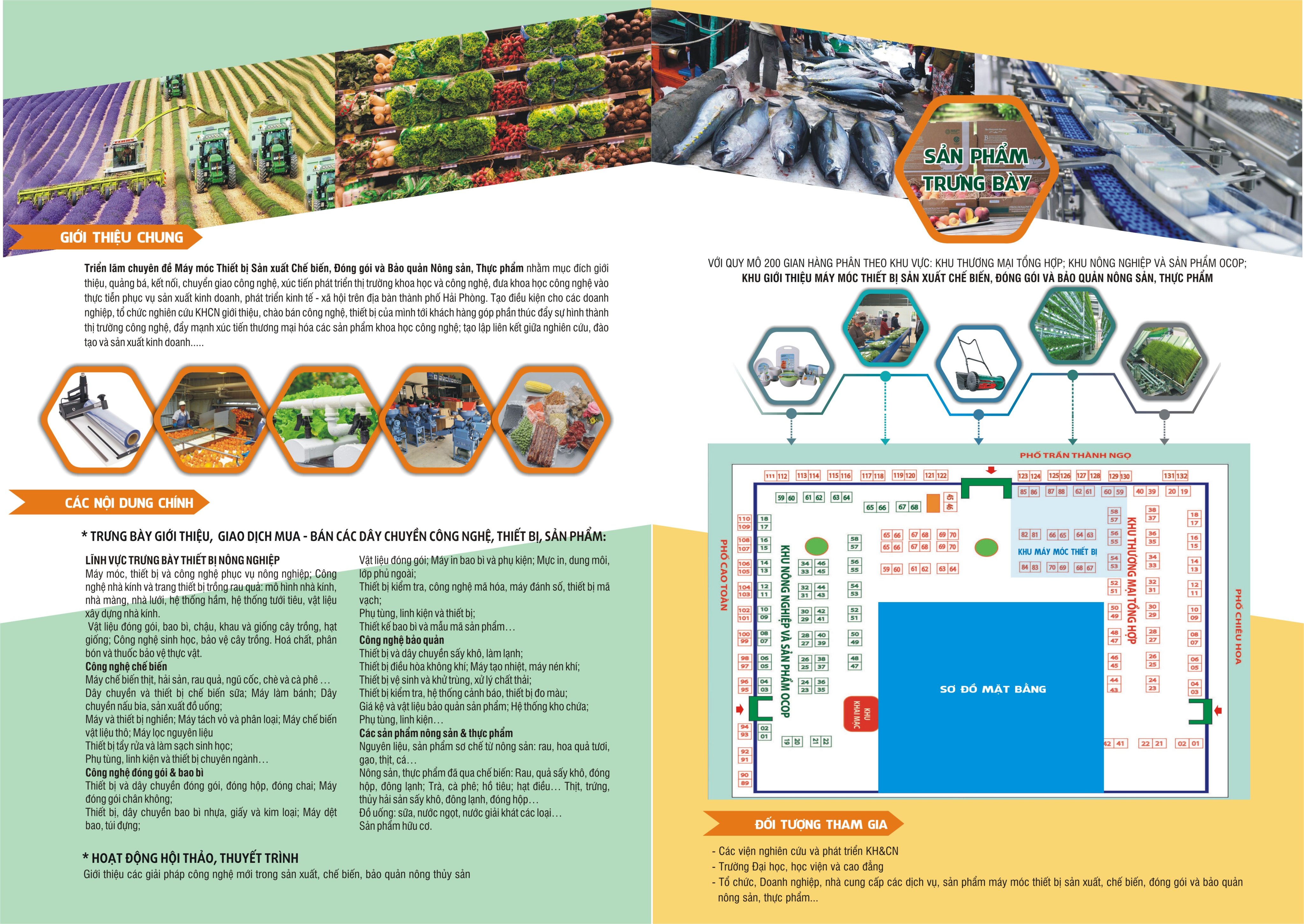 Nhằm mục đích giới thiệu, quảng bá, kết nối, chuyển giao công nghệ, xúc tiến phát triển thị trường khoa học và công nghệ, đưa khoa học công nghệ vào thực tiễn phục vụ sản xuất kinh doanh, phát triển kinh tế - xã hội trên địa bàn thành phố Hải Phòng, Sở Khoa học và Công nghệ Hải Phòng phối hợp với Sở Nông nghiệp và Phát triển nông thôn Hải Phòng tổ chức “Triển lãm Công nghệ và thiết bị chuyên đề về máy móc thiết bị sản xuất, chế biến, đóng gói và bảo quản nông sản, thực phẩm”.