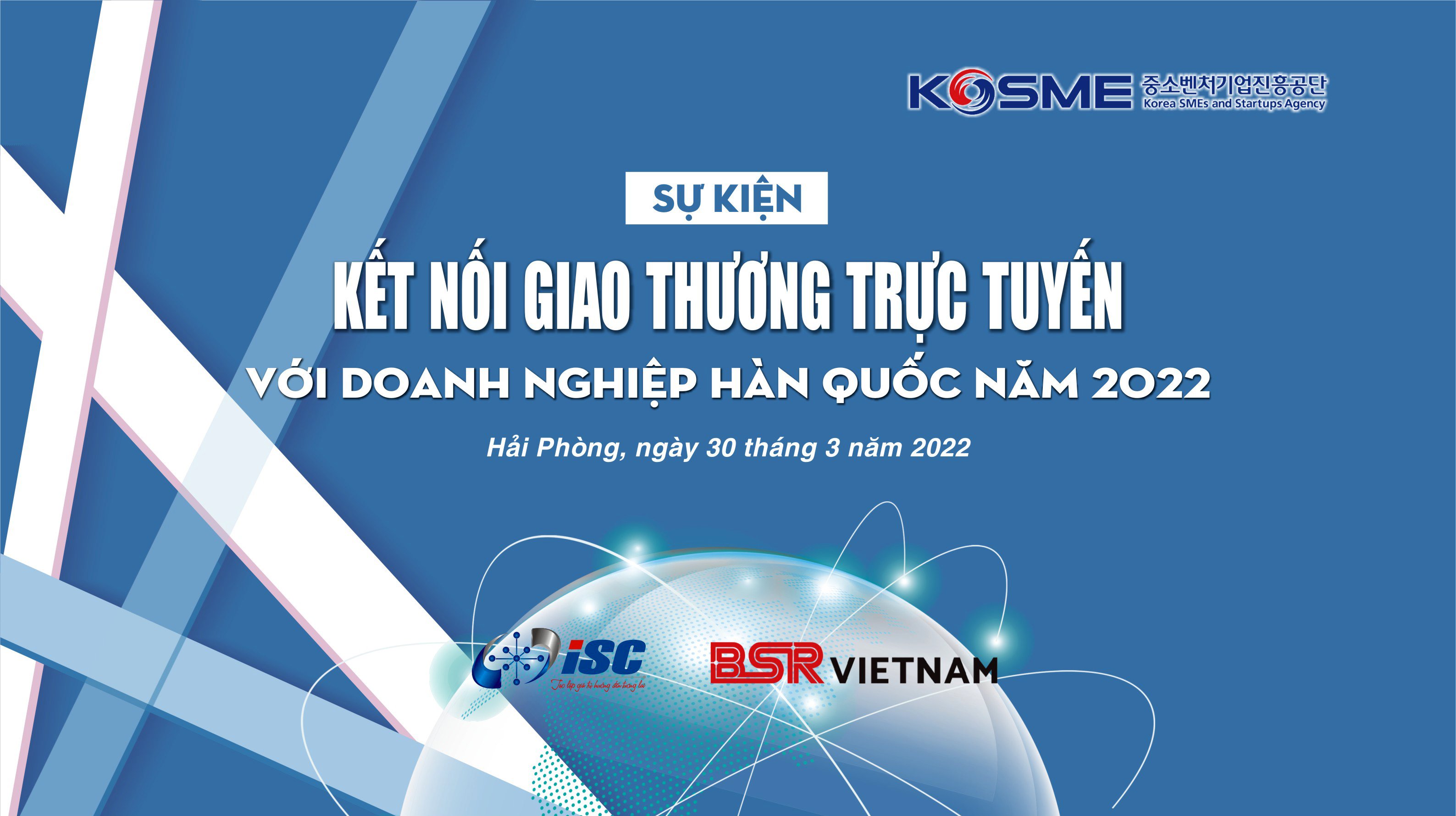 Nhằm hỗ trợ xúc tiến kết nối giao thương giữa các DN Việt Nam và DN Hàn Quốc, Công ty CP BRS Việt Nam phối hợp với Trung tâm Phát triển KHCN và DDMST (ISC) tổ chức "SỰ KIỆN KẾT NỐI GIAO THƯƠNG TRỰC TUYẾN VIỆT NAM - HÀN QUỐC".